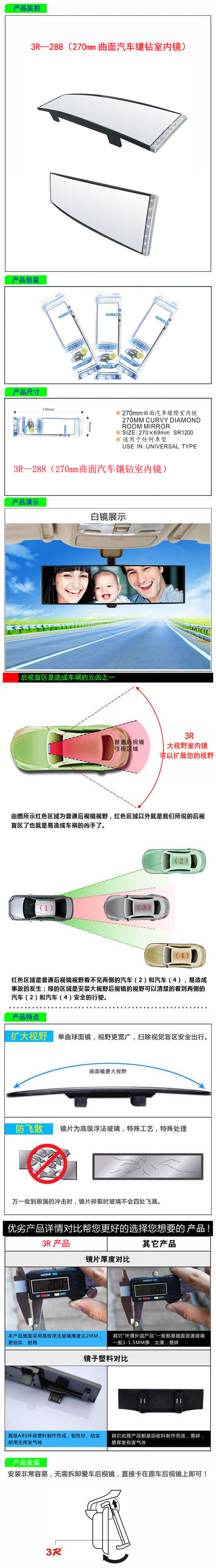 • 型號:   3R—288(270mm曲面汽車鑲鉆室內鏡)