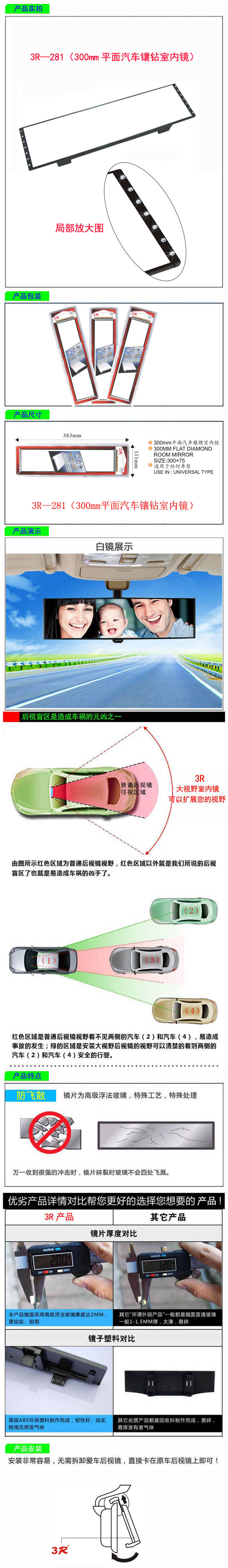 • 型號:   3R—281(300mm平面汽車鑲鉆室內鏡)