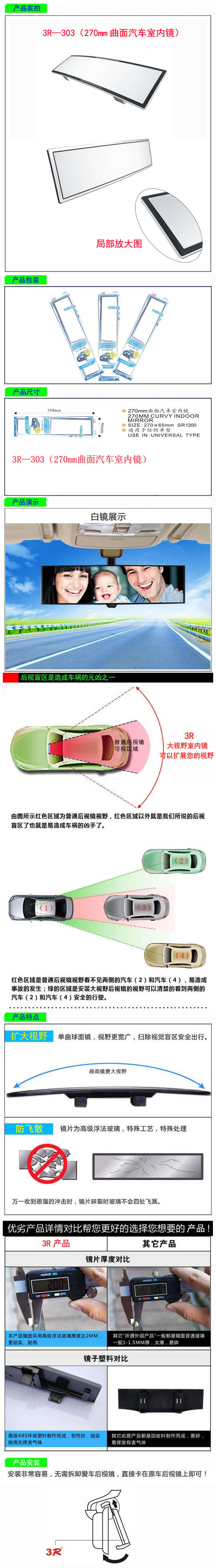 • 型號:   3R—303(270mm曲面汽車室內鏡)