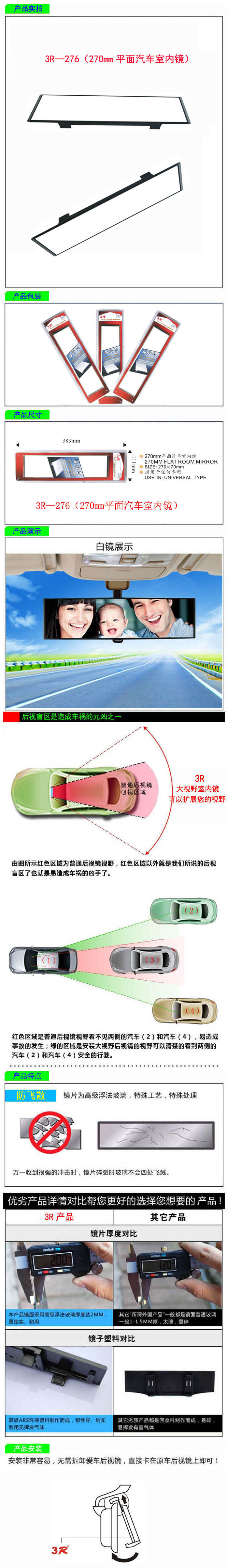 • 型號:   3R—276(270mm平面汽車室內鏡)