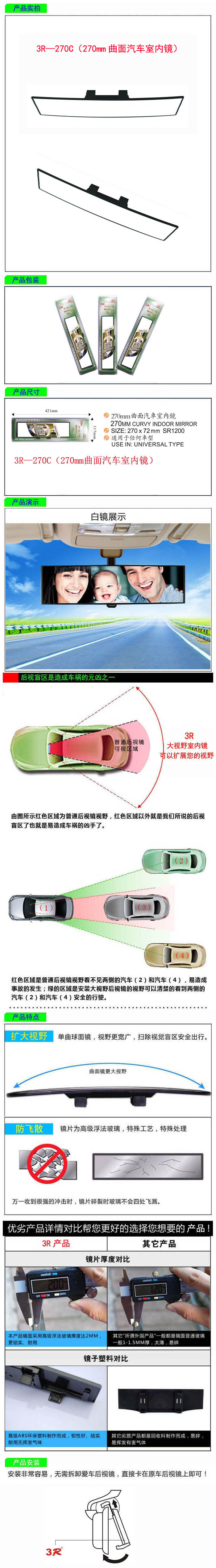 • 型號:   3R—270C(270mm曲面汽車室內鏡)