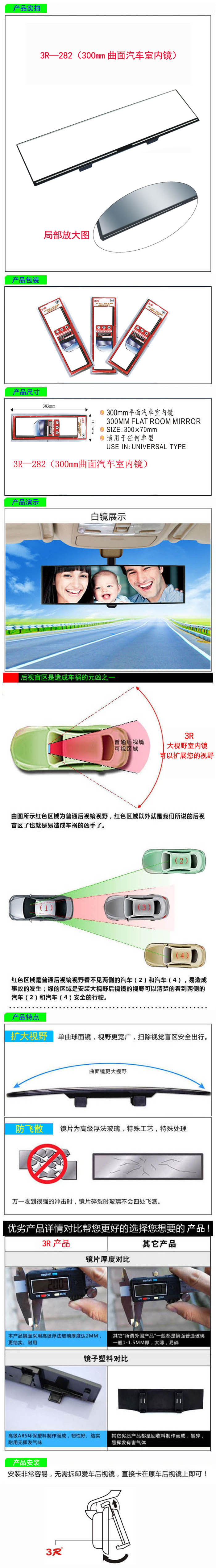 • 型號:   3R—282(300mm曲面汽車室內鏡)