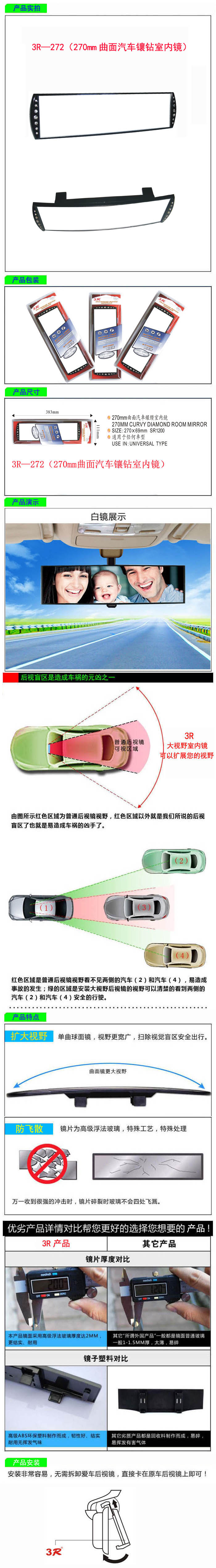 • 型號:   3R—272(270mm曲面汽車鑲鉆室內鏡)