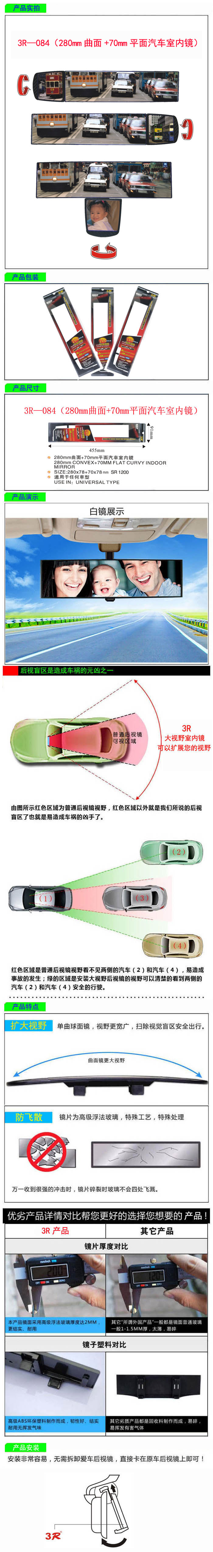 • 型號:   3R—084(280mm曲面+70mm平面汽車室內(nèi)鏡)