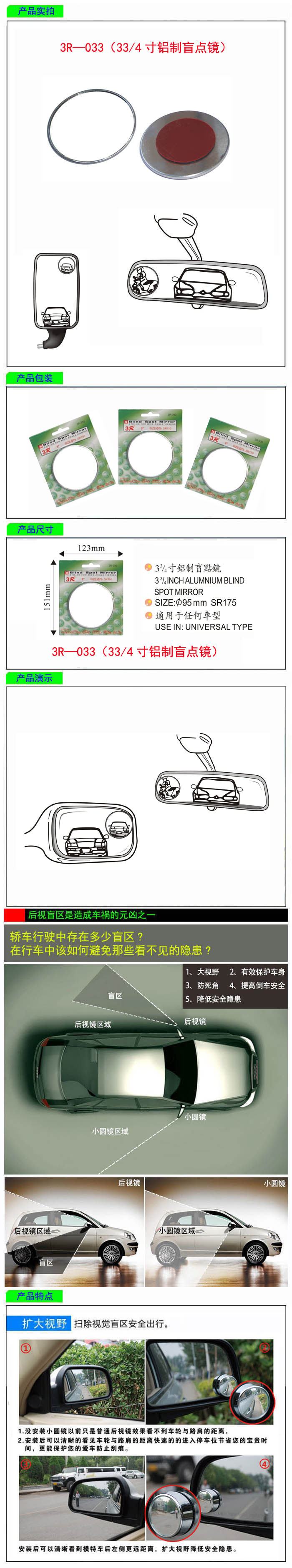 • 型號:   3R—033(33/4寸鋁制盲點鏡)