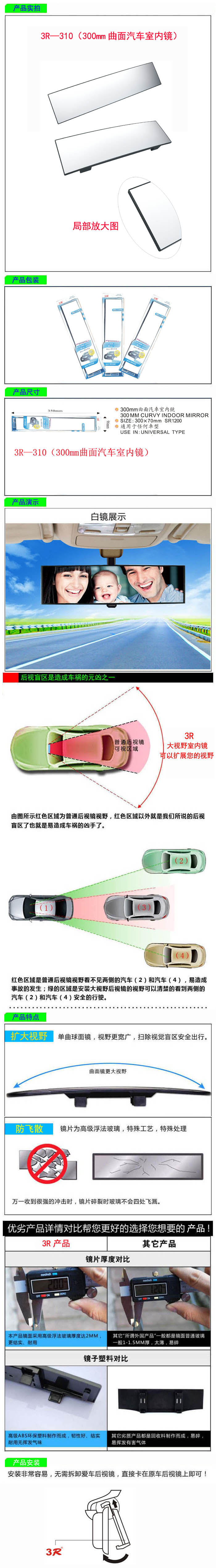 • 型號:   3R—310(300mm曲面汽車室內鏡)