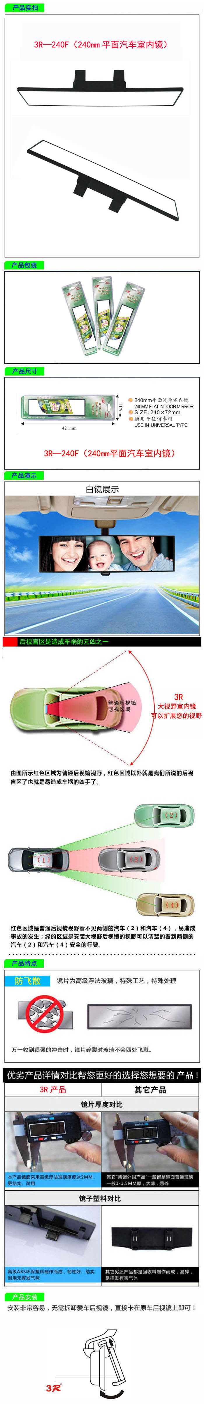 • 型號:   3R—240F(240mm平面汽車室內鏡)