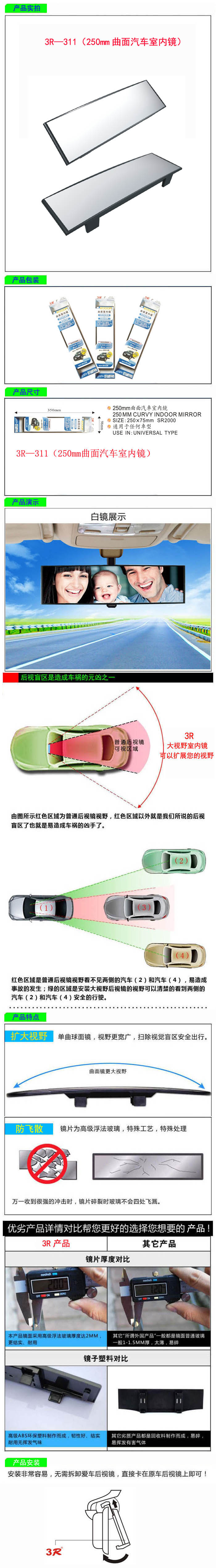 • 型號:   3R—311(250mm曲面汽車室內鏡)