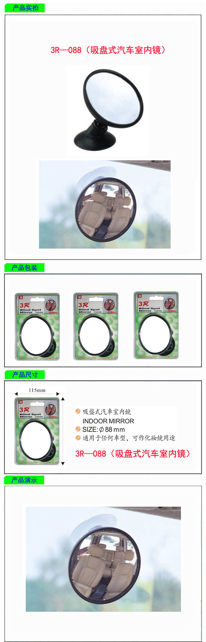 • 型號:   3R—088(吸盤式汽車室內鏡)