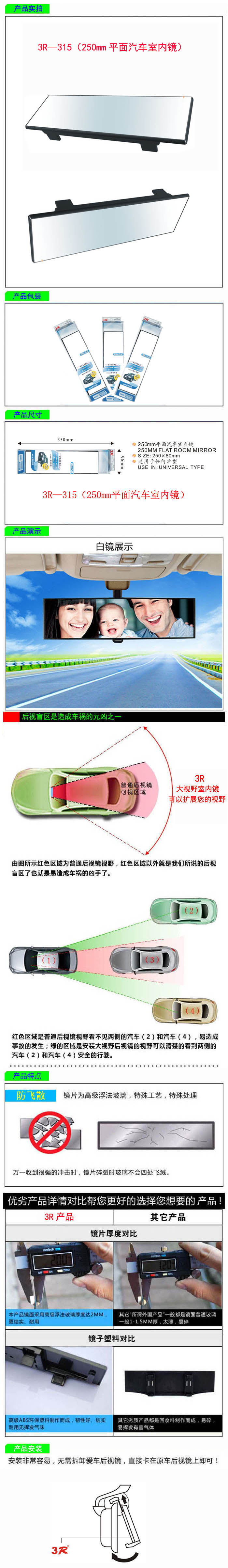 • 型號:   3R—315(250mm平面汽車室內鏡)